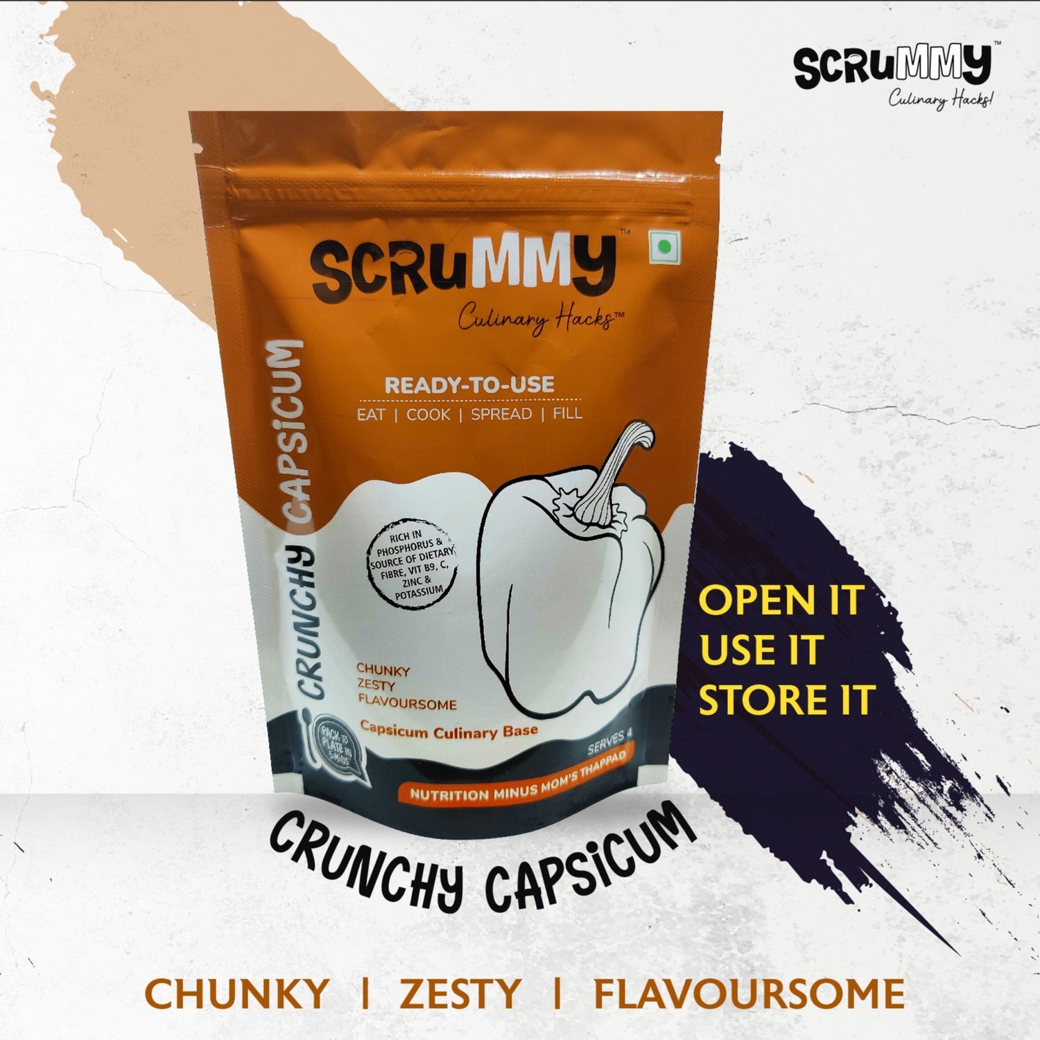 Made from nutritious peppers, rich in Vit C & antioxidants - Crunchy Capsicum provides for a home-made style base for your cooking adventures. Each pack of Crunchy Capsicum is a storehouse of nutrients to keep your family healthy without any compromise on taste.