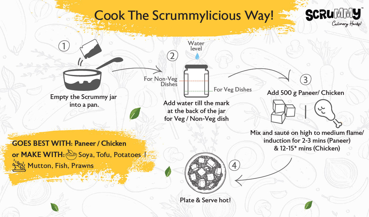 3. Mix the contents and sauté over high flame/induction for 2-3 mins (Paneer) & 12-13 mins (Chicken). Plate & Serve hot!